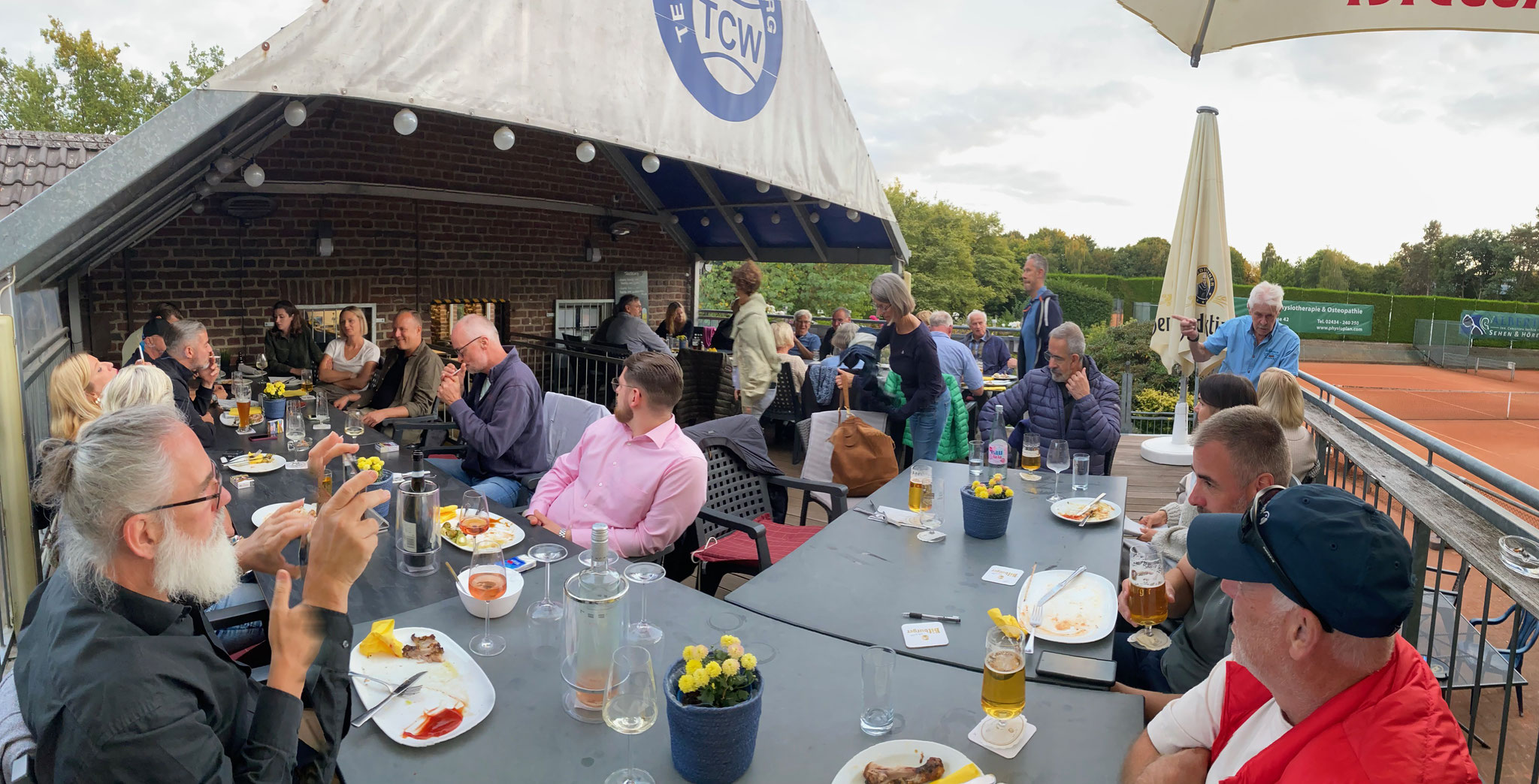 Bei herrlichstem Sonnschein fanden sich erfreulich viele Mitglieder und auch ein paar Gäste ein, um aus Spaß am Tennis 6 Runden unterschiedlichste Mixed-Kombinationen zu spielen. Nach tollen vor Allem dem Spaß gewidmenten Spielen, ließen wir 5 Stunden Tennis auf der Terrasse bei kühlen Getränken und wer wollte auch einer leckeren Speise ausklingen.
