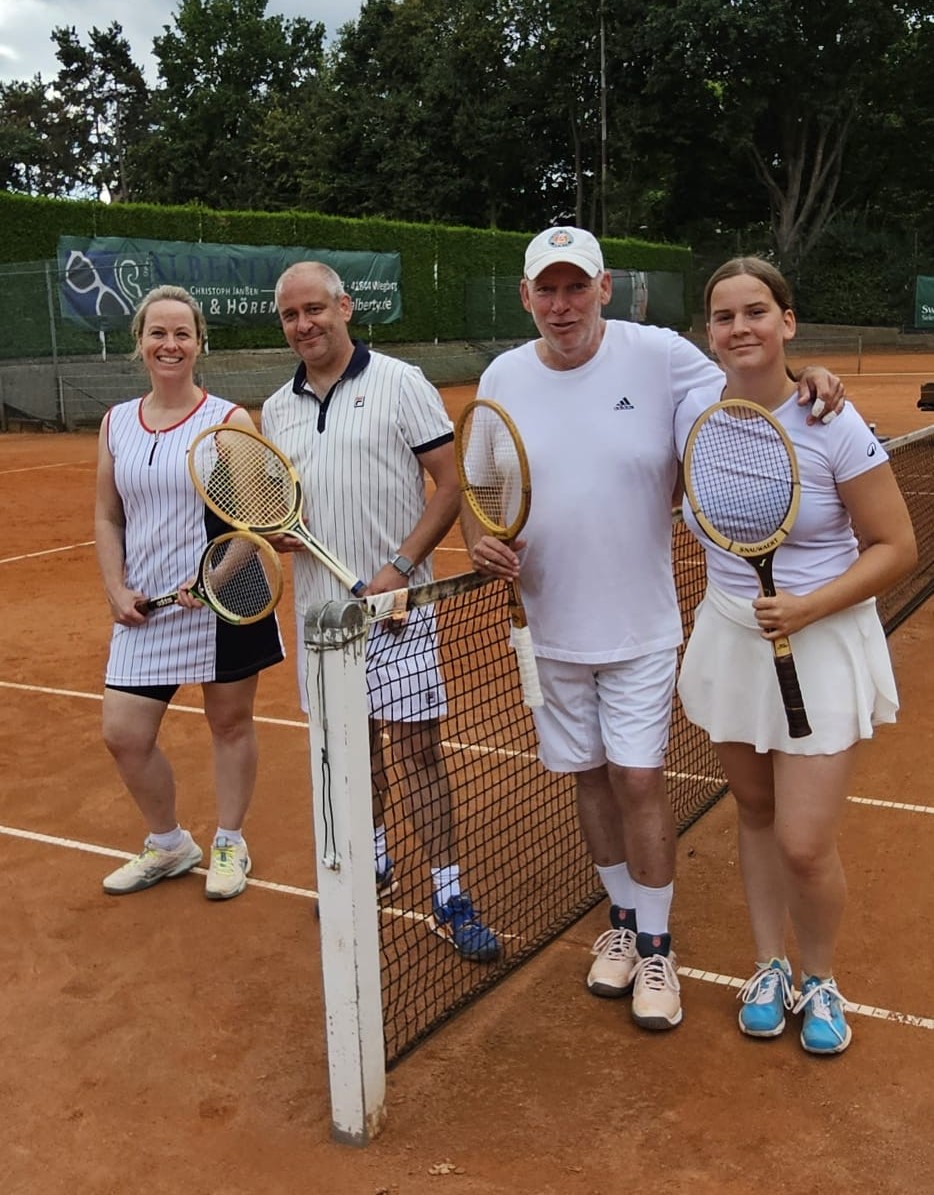 Wir haben aber auch eine Bitte: Falls Ihr noch alte Schläger zu Hause habt, die wir an dem Tag einsetzen können, lasst uns das bitte wissen. Je mehr Schläger wir haben, desto besser.